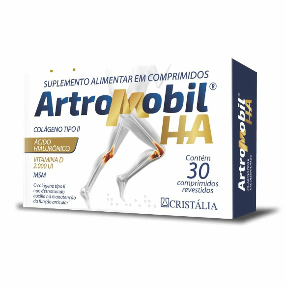 Artromobil HA é um suplemento alimentar composto por colágeno tipo II, Àcido Hialurônico e Vitamina D.