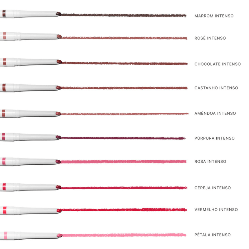 O Contorno Labial Boca Rosa tem textura cremosa que desliza fácil e entrega cor intensa desde o primeiro traço. Com ponta chanfrada e mecanismo retrátil, dispensa o uso de apontador e é perfeito para contornar e preencher com facilidade. Sua fórmula confortável e a prova d’água garante um acabamento impecável.