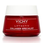 Vichy Liftactiv Colágeno Specialist é um creme com nova fórmula que associa a Água Vulcânica Vichy a um concentrado de ativos dermatológicos (Peptídeos Colágeno Specialist, Vitamina CG e Niacinamida - Vitamina B3).