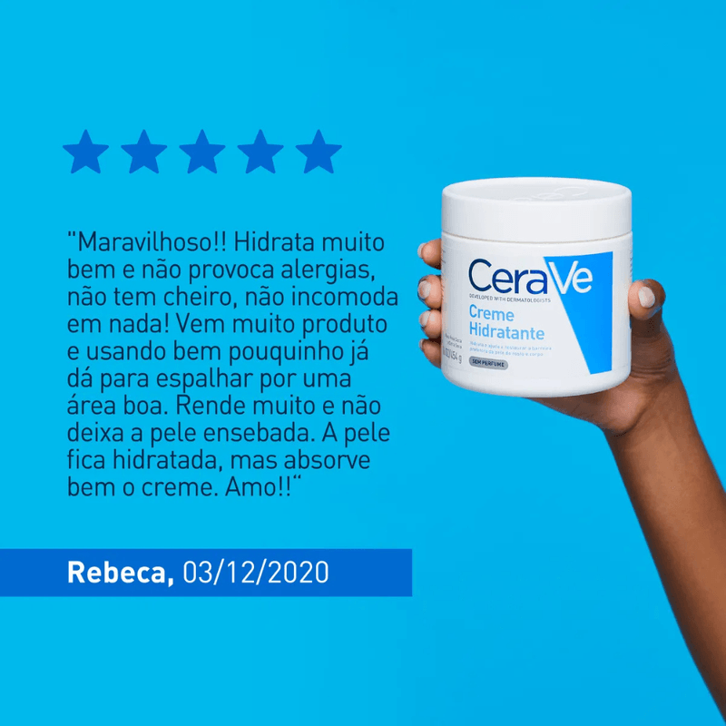 O Creme Hidratante para o corpo e rosto de CeraVe atua na hidratação e restauração da barreira protetora da pele. Desenvolvido em conjunto com dermatologistas, é ideal para as pessoas que possuem peles secas e muito seca.