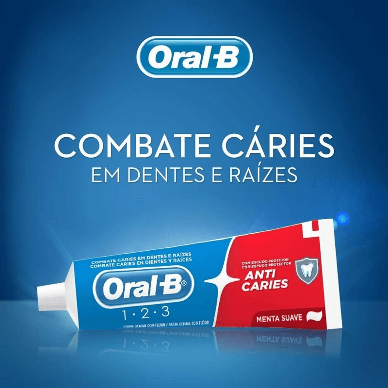 Creme Dental Oral-B 123 Anti Cáries 70g proporciona o cuidado dos dentes da família, tanto dos jovens até dos mais velhos. Oferece proteção anticáries, dentes brancos e refrescância.