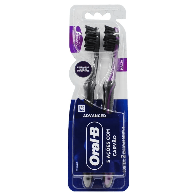 Oral-B é uma escova de dente que possui cerdas com mineral de carvão, limpador de língua é bochechas. As cerdas interdentais ajudam a limpam entre os dentes e remover manchas superficiais. Sua ponta ultra eficiente que limpa áreas difíceis de alcançar. Escove os dentes diariamente depois de cada refeição, pelo menos 3 vezes ao dia ou segundo orientação do seu dentista.