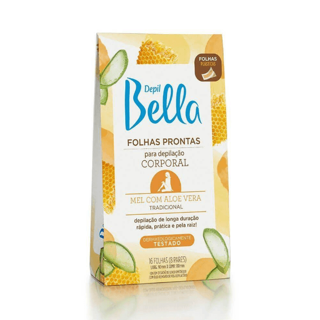 Sua fórmula combina o poder nutritivo do mel, que auxilia na hidratação da pele, com as propriedades calmantes da aloe vera, que reduz possíveis irritações. O produto acompanha 8 pares de folhas depilatórias (16 folhas no total) e 1 sachê de lenço umedecido com óleo removedor pós-depilatório, que facilita a remoção dos resíduos de cera e proporciona um acabamento limpo e confortável.