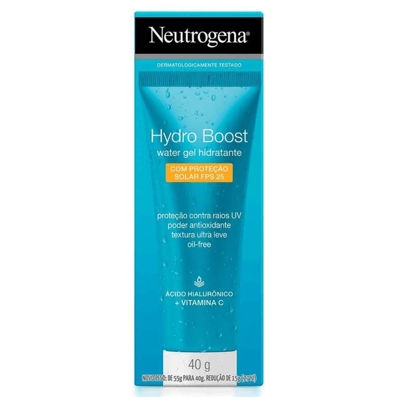 O Neutrogena Hydro Boost Water Gel combina hidratação intensa 24 horas e proteção contra os raios solares em uma textura única e superleve. Com ácido hialurônico e tecnologia HELIOPLEX®, ajuda a restabelecer os níveis saudáveis de água na pele, além de conter Vitamina C, que tem um efeito antioxidante e protege contra o envelhecimento precoce, deixando a pele mais firme e jovem. Possui rápida absorção e efeito matte. Não obstrui os poros, é hipoalergênico** e oil-free.