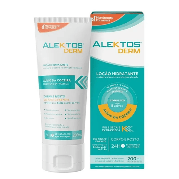 A Alektos Derm é uma loção hidratante que restaura a barreira protetora da pele.