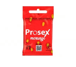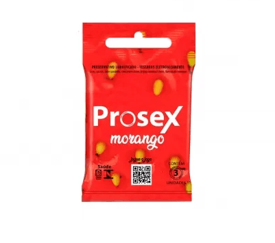 Prosex Morango Flavorizado Premium com o que há de melhor em sabor e aroma em um preservativo: paredes lisas, largura nominal de 52mm e sachê com 3 unidades.
