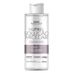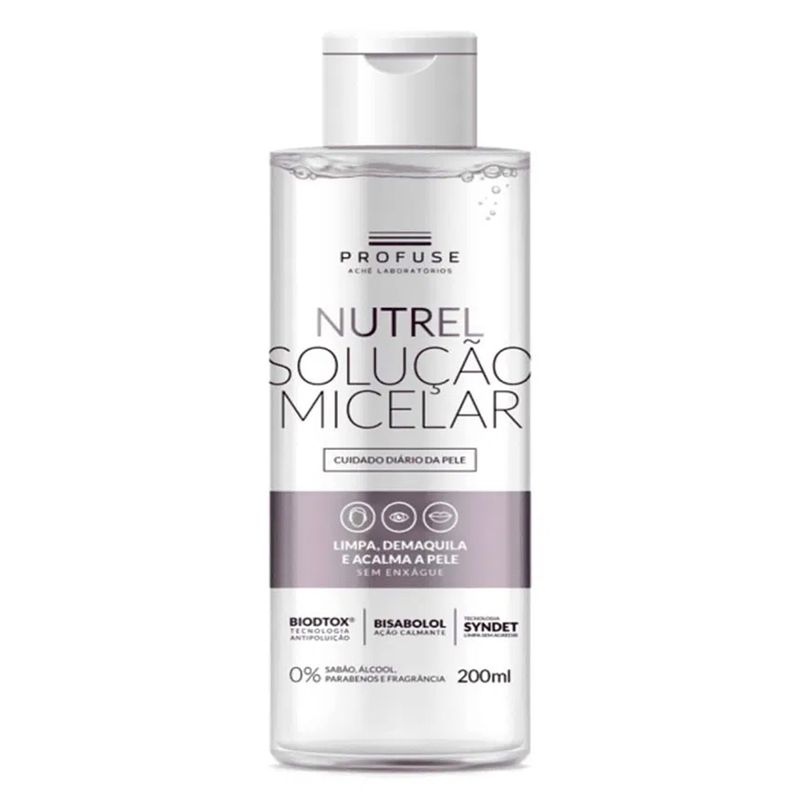 Como usar: Com o auxílio de um algodão, limpe a área do rosto até total remoção das impurezas. Na área ao redor dos olhos, aplique e pressione suavemente o algodão com Nutrel Solução Micelar. Deixe o produto agir por alguns instantes para realizar a remoção da maquiagem. Produto sem enxágue.