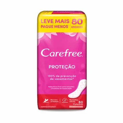 O Carefree Proteção é um protetor íntimo feminino diário, descartável, para fluxos bem leves, que normalmente acontecem no início e no fim da menstruação. Possui uma película protetora que retém pequenos escapes, mantendo sua calcinha seca e limpa. Com fragrância suave, neutraliza possíveis odores.