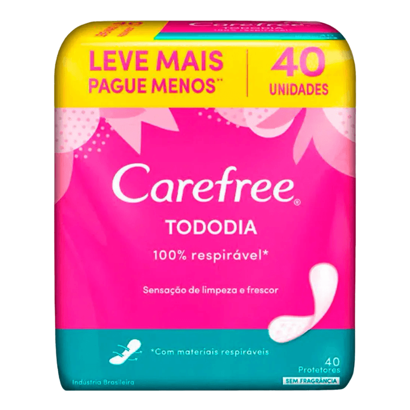 Carefree Tododia é o protetor diário sem fragrância, ideal para quando não estamos naqueles dias. Feito com microporos e material respirável, ele permite a circulação do ar, absorve a transpiração e neutraliza possíveis odores.