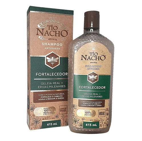 Desenvolvido com Geleia Real e ingredientes hidratantes de origem natural, o Shampoo Tío Nacho Fortalecedor Ervas Milenares possui eficácia comprovada no fortalecimento dos fios, auxiliando na redução e prevenção da queda e proporcionando mais resistência para o cabelo. Ainda, reduz o excesso de oleosidade do couro cabeludo, e devolve o brilho natural e maciez para os fios, com resultados eficazes desde o primeiro uso.