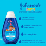 Johnson's 2 em 1 foi especialmente desenvolvido para cuidar do cabelo e do couro cabeludo em desenvolvimento das crianças: ele limpa suavemente, perfuma e tem agentes condicionantes para tornar a rotina do banho mais prática com apenas um passo.