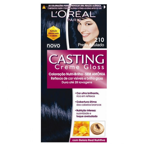 Casting Creme Gloss de L'Oréal Paris é a coloração sem amônia que dá aos cabelos uma cor incrível e brilho gloss insuperável. Não resseca os fios e pode até ser usada em cabelos com química. O frasco de tratamento condicionador Nutri-Brilho, para uso após a coloração, é enriquecido com Geleia Real, que nutre intensamente a fibra capilar, deixando seus cabelos mais macios, sedosos e com toque aveludado.
