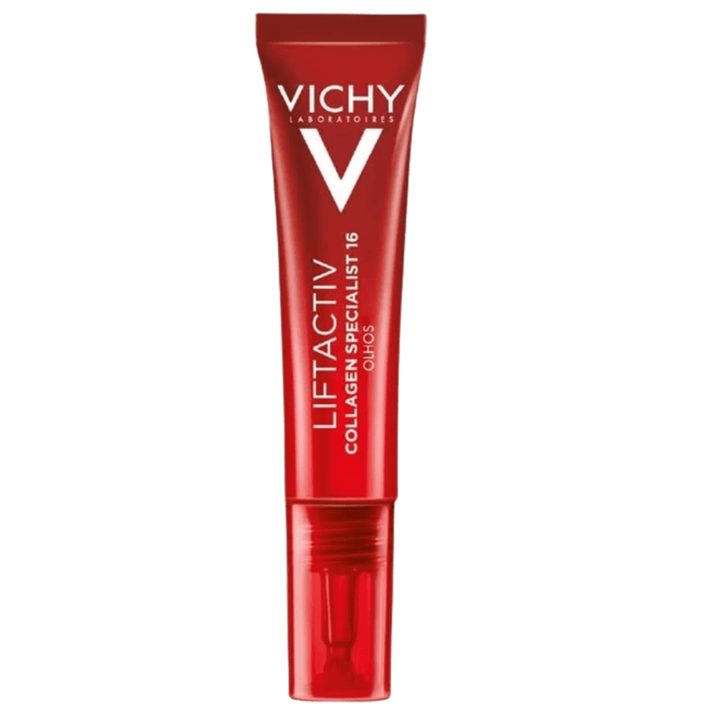 Vichy Liftactiv Colágeno Specialist 16 Olhos 15ml é o primeiro tratamento de contorno de olhos dos Laboratórios Vichy a incorporar a tecnologia Co-Bonding, uma combinação de 3 ingredientes ativos que estimula a produção de todas as famílias de colágeno, para uma pele mais firme, macia e tonificada ao redor dos olhos.