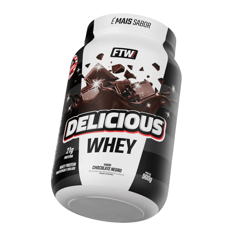 O Whey Delicious FTW na versão Chocolate Negro é para quem leva o sabor a sério. Diferente dos wheys convencionais, a linha Delicious foca em uma experiência sensorial superior, entregando uma cremosidade de milk-shake com o perfil nutricional que quem treina pesado exige. O sabor Chocolate Negro traz notas mais intensas de cacau, sendo menos doce que o tradicional e perfeito para paladares mais exigentes.